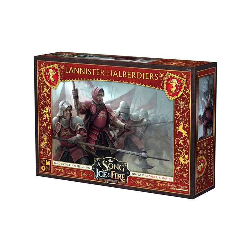 The Lannister Halberdiers Unit Box for the A Song of Ice and Fire: Tabletop Miniatures Game gives Lannister Commanders new options for their forces. The unit is formidable in both offensive and defensive capacities, not losing dice after their first rank is destroyed, and being able to brace for an enemy Charge, granting them a preemptive attack against their foes. The addition of an Assault Veteran Unit Attachment gives them staying power once battle has been met, adding extra dice to their melee attacks.