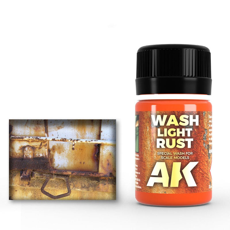 Light rust wash is indicated for rust effects on all kinds of surfaces. Perfect for any rust effects on vehicles or accessories. It has a light rusty color, which stands out really well on dark greens giving a great realistic matt finish. It is perfect for amphibious or normal vehicles in wet environments. Also great for doing rusting effects on abandoned vehicles. The basic technique used to weather any type of model is the wash, a classic technique that is still one of the most used techniques in modeling today. Apply the washes after shaking the bottle with a large brush to pick out details and create shadows.