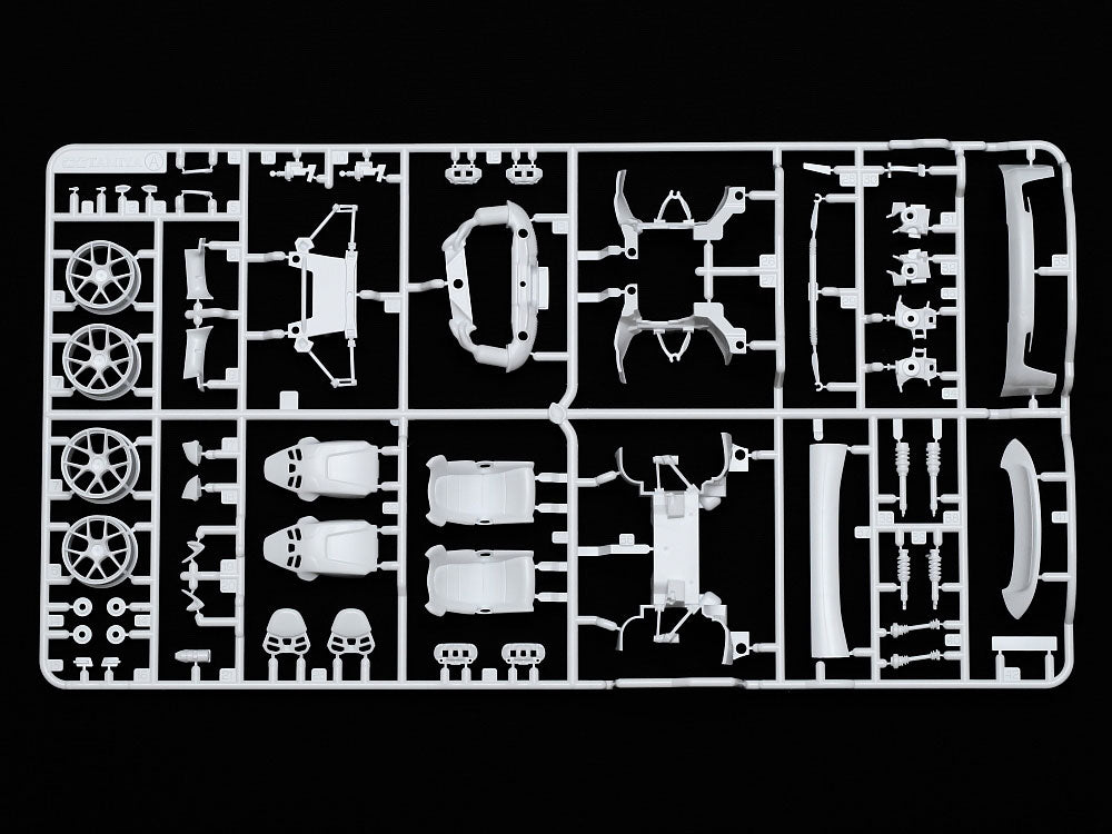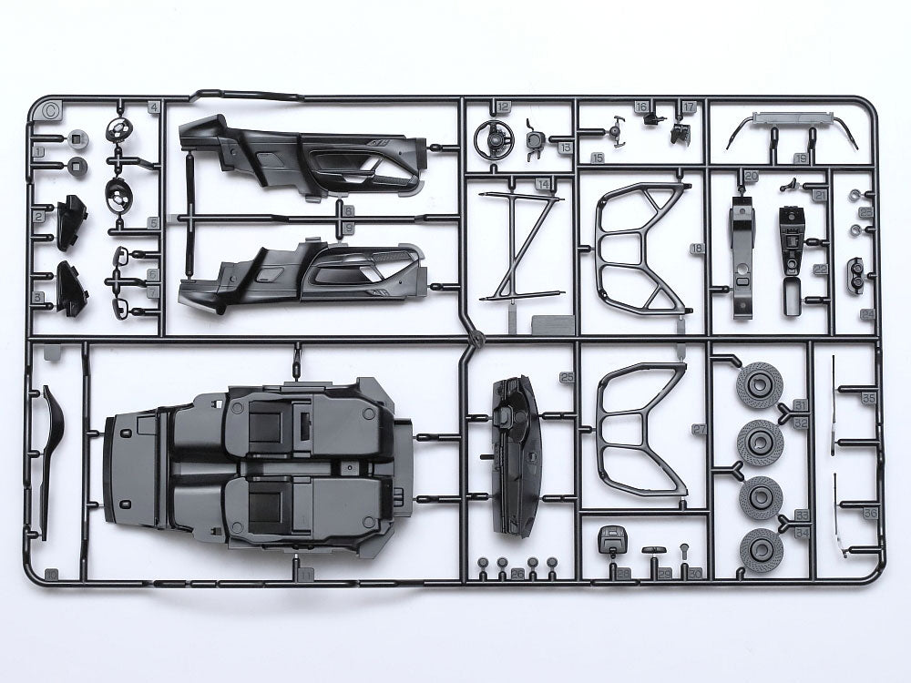★This is a 1/24 scale plastic model assembly kit. Length: 190mm, width: 85mm, height: 55mm. ★The powerful form with air vents and fins is authentically captured in style. ★Diffuser and suspension are depicted realistically. ★Decals depict dashboard, carbon fiber hood and roof, mesh seat surfaces and door linings. ★Separate components recreate brake calipers and discs. ★Metal transfers are included to depict side mirror surfaces and more. ★Masking stickers aid with the paint job. ★Solid synthetic rubber tires are treaded.
