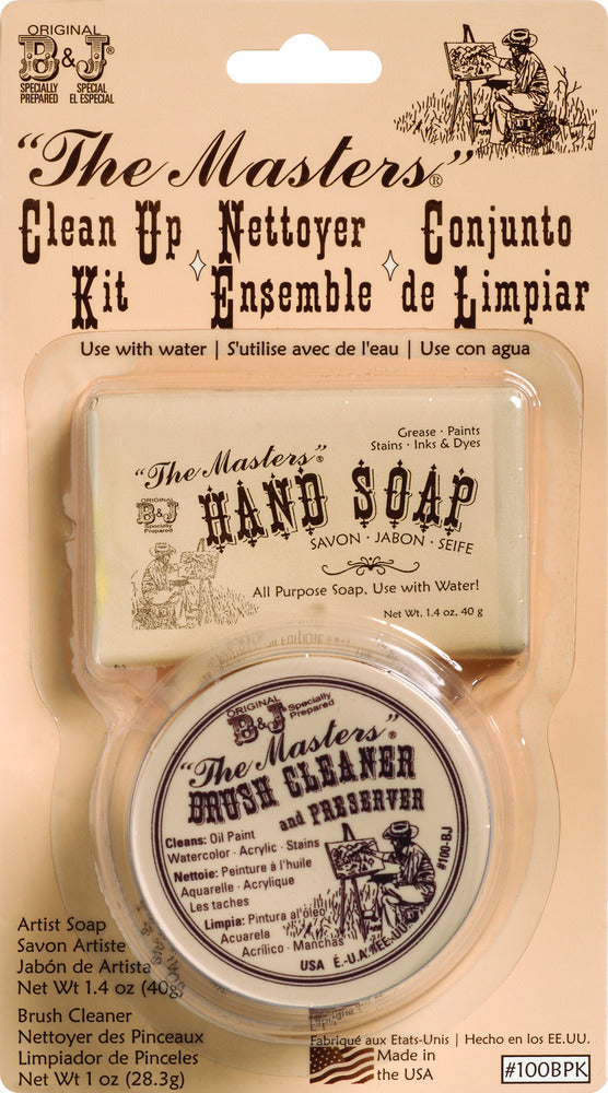 "The Masters" Hand Soap gently cleans and conditions hands. The B&J Formula is non-abrasive, yet effectively removes paints, including oil, inks, dyes, grass stains, grease, and grime. Perfect for cleaning up after painting, crafting, gardening, or even working on the car. Specially formulated, this soap makes cleaning up safe and easy, while keeping your hands soft and fresh smelling. Just wash with plain water. No need to use harsh chemicals and thinners.