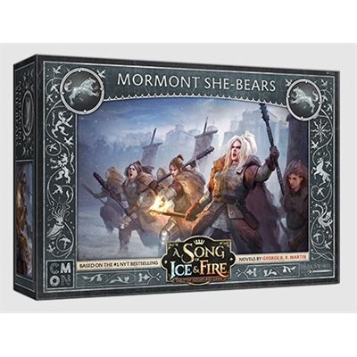 The Mormont She-Bears Unit Box for the A Song of Ice and Fire: Tabletop Miniatures Game gives House Stark players a durable unit for their forces. These tough women are outfitted with thick leather and sturdy plate mail, making them able to turn away enemy blows with ease. Offensively, they attack mercilessly with two-handed maces, able to crush enemy armor with a single blow. The more dire the situation, the harder the She-Bears fight, often carrying on in battle past near-fatal wounds.