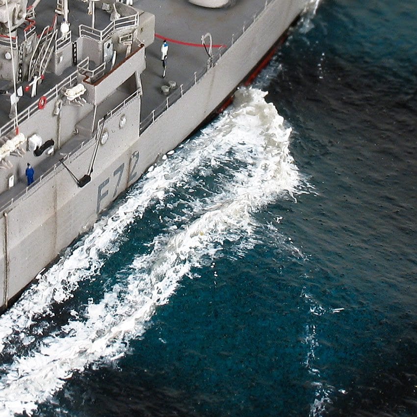The perfect product for recreating any type of moving water effects from the bow wake of any vessel, to waves, ripples, and waterfalls. Creating any moving effect is easy with this clear 1-part, low odor water-based resin product that holds its shape, even on a vertical surface. This is a high-quality acrylic product developed for extreme realism.