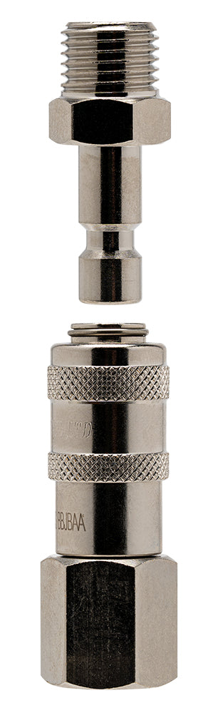 Quick Disconnect Set for Iwata compressor model IS975 Iwata Power Jet Pro. Female adaptor attaches to the compressor and male adaptor attaches to the air hose.