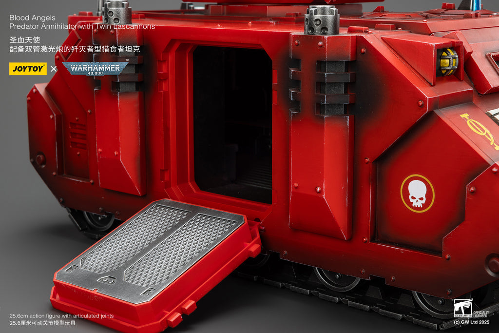 Unleash devastating firepower with JoyToy’s Blood Angels Predator Annihilator with Twin Lascannons. This highly detailed, collectible figure brings the iconic Warhammer 40K vehicle to life, featuring intricate design, authentic Blood Angels iconography, and powerful twin lascannons—perfect for any fan or collector of the Imperium’s elite Space Marines.