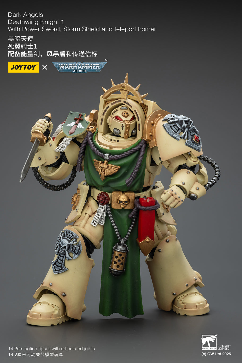 JoyToy Warhammer Dark Angels Deathwing Knights - Clad in heavily ornamented Terminator armor, these figures come armed with towering storm shields and brutal Maces of Absolution, embodying the unbreakable resolve of the Deathwing. Fully articulated and richly detailed, they are an essential addition for Dark Angels collectors and Horus Heresy enthusiasts alike.