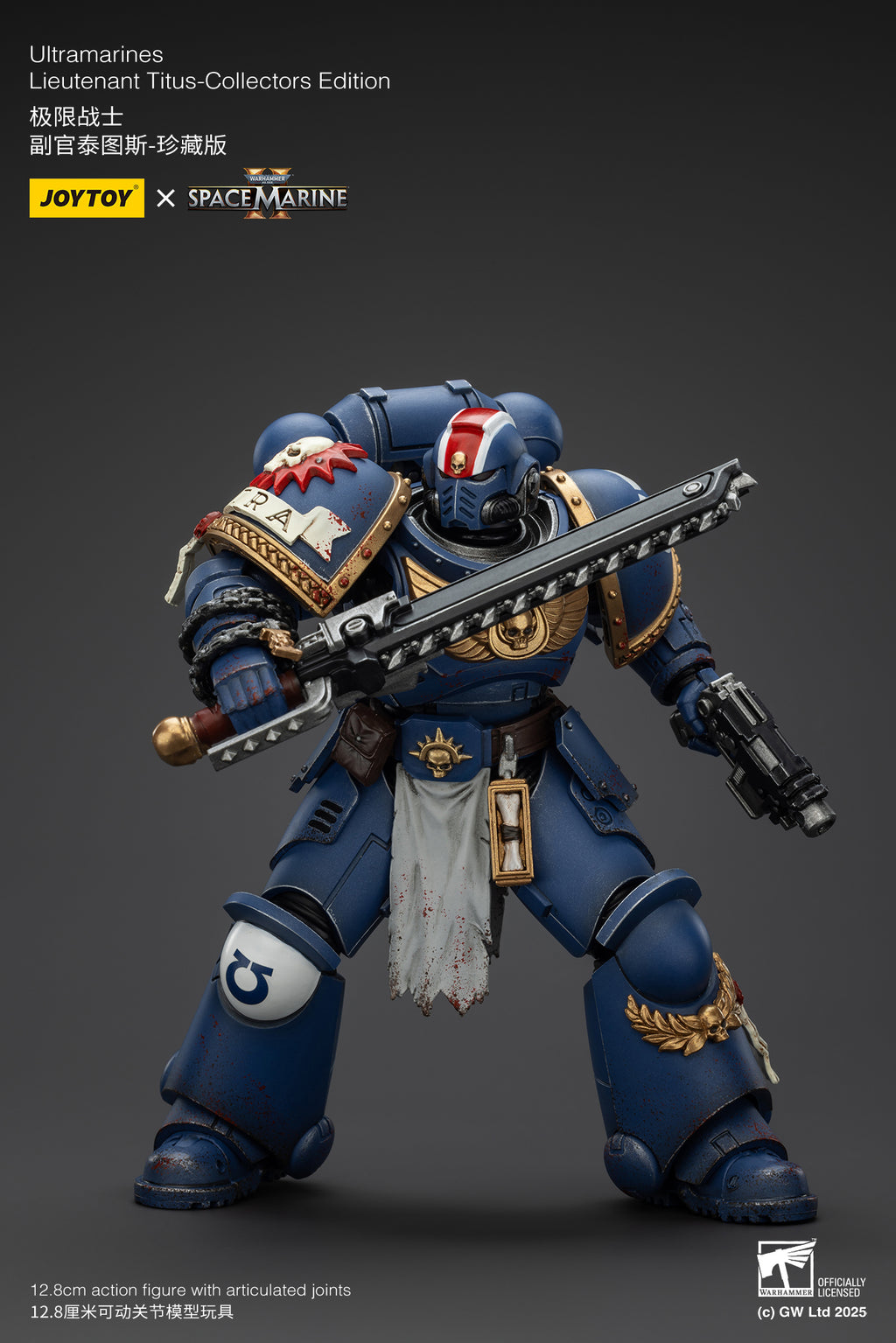 The Space Marine 2 Titus figure is a highly detailed 1/18 scale collectible, capturing the essence of Lieutenant Titus from Warhammer 40,000: Space Marine II. Crafted with precision, this figure features dynamic articulation, interchangeable parts, and authentic accessories, including a chainsword, bolter, and jetpack. Perfect for fans and collectors, it brings the valor of the Ultramarines to life in stunning detail. The Collector’s Edition this time will include a helmet with glowing eyes.